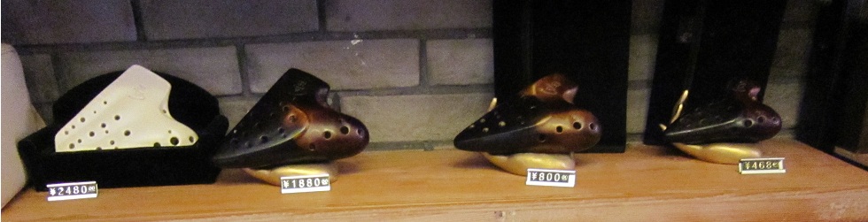 (店でたくさんのオカリナを試奏させてもらった)